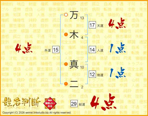 万木真二さんの総運は29画の4点!