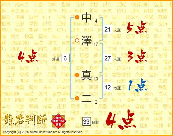 中澤真二さんの総運は33画の4点!