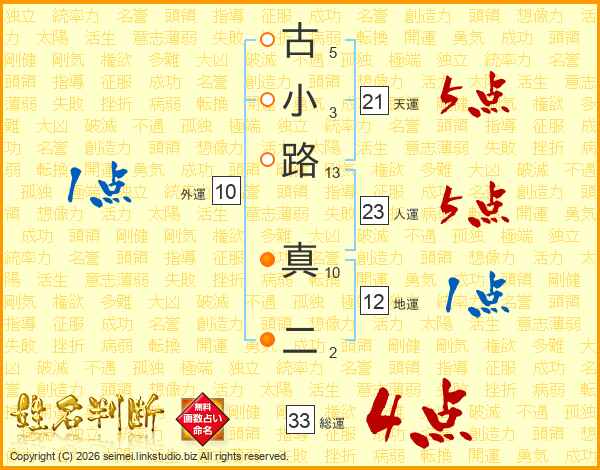古小路真二さんの総運は33画の4点!