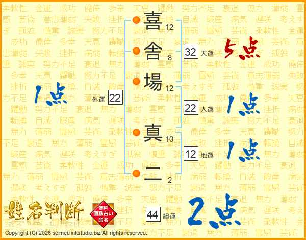 喜舎場真二さんの総運は44画の2点!