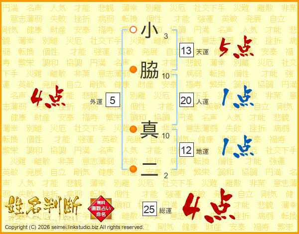 小脇真二さんの総運は25画の4点!