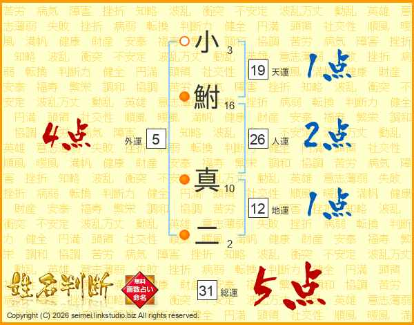小鮒真二さんの人運は26画の2点!