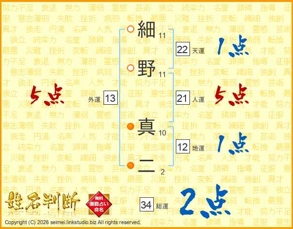 細野真二さんの天運は22画の1点!