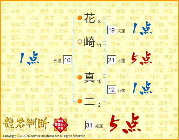 花崎真二さんの総運は31画の5点!