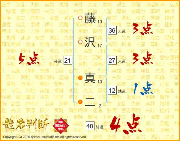 藤沢真二さんの総運は48画の4点!