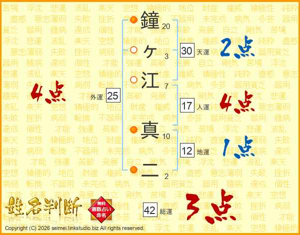 鐘ヶ江真二さんの総運は42画の3点!