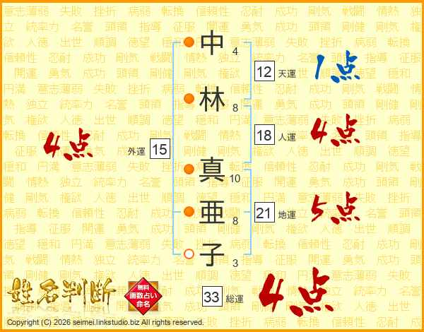 中林真亜子さんの総運は33画の4点!