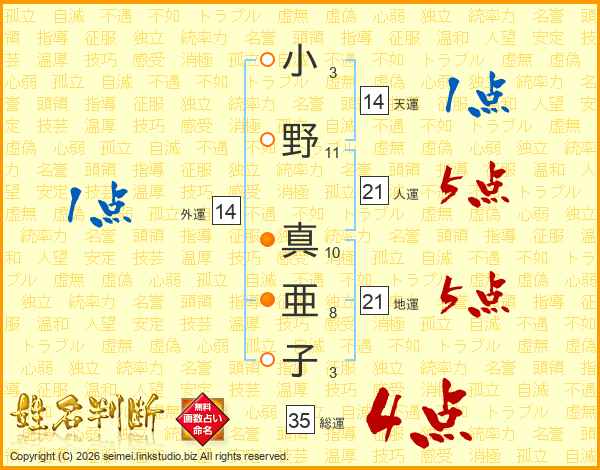 小野真亜子さんの総運は35画の4点!