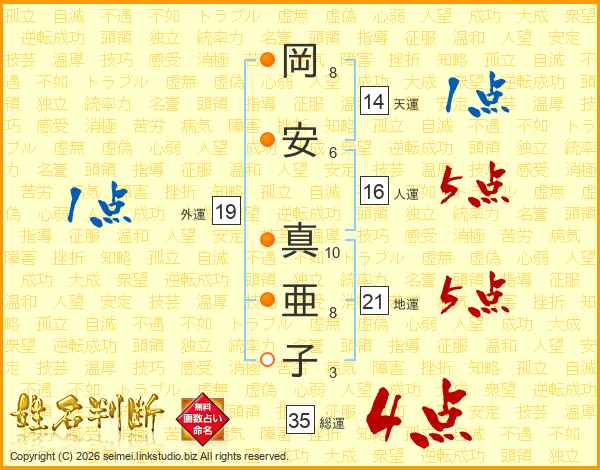 岡安真亜子さんの総運は35画の4点!