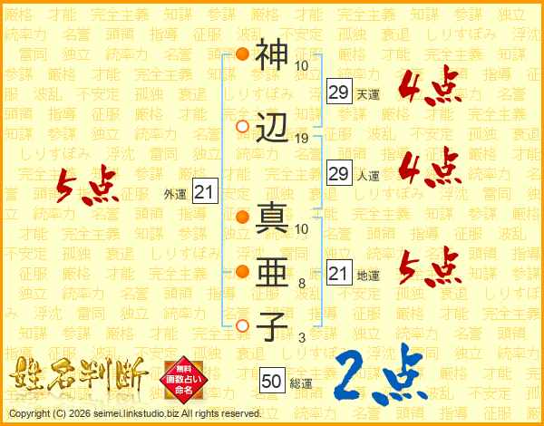 神辺真亜子さんの総運は50画の2点!