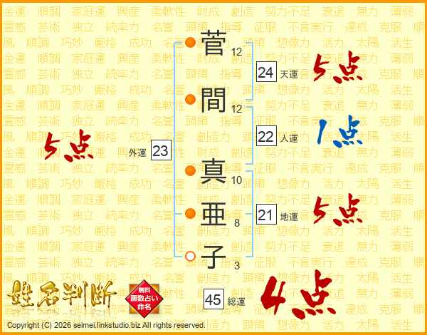 菅間真亜子さんの総運は45画の4点!