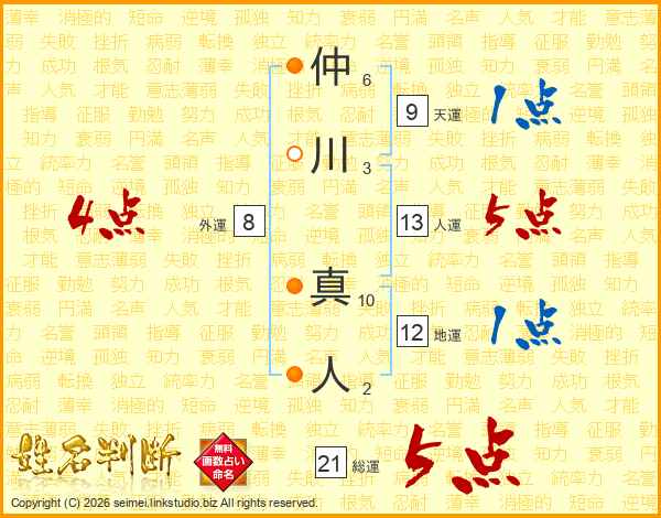 仲川真人さんの総運は21画の5点!