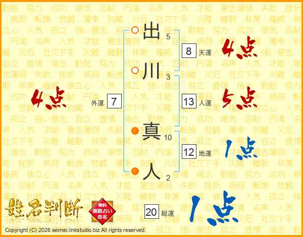 出川真人さんの人運は13画の5点!