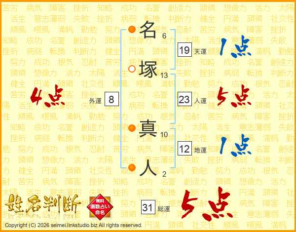 名塚真人さんの総運は31画の5点!