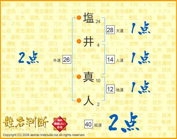 塩井真人さんの総運は40画の2点!