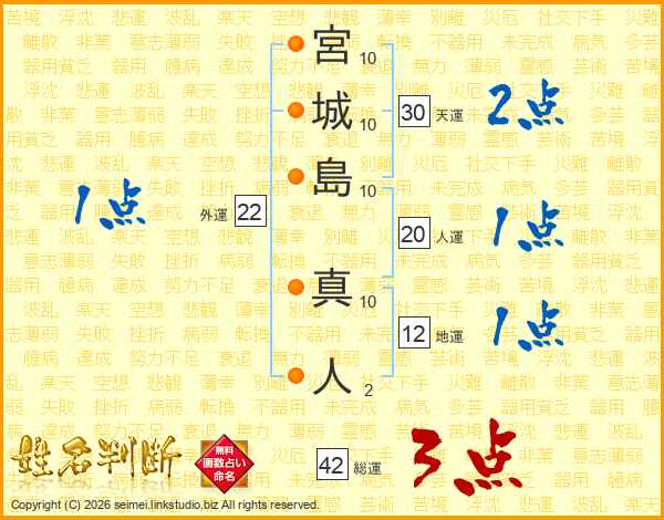 宮城島真人さんの総運は42画の3点!