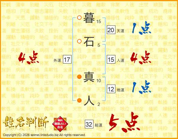 暮石真人さんの総運は32画の5点!
