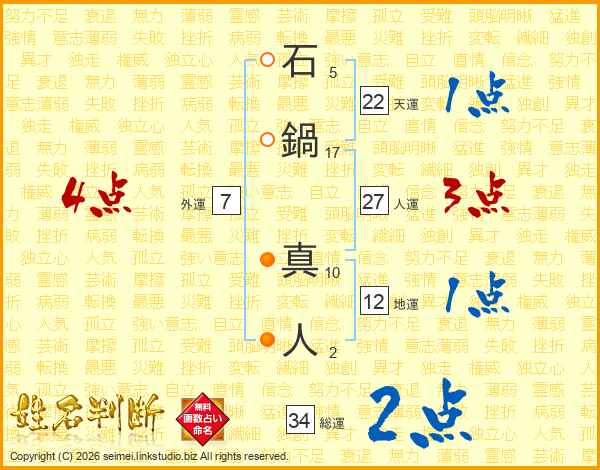 石鍋真人さんの総運は34画の2点!