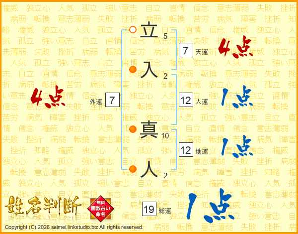 立入真人さんの天運は7画の4点!