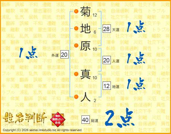 菊(12画)地(6画)原(10画) 真(10画)人(2画)