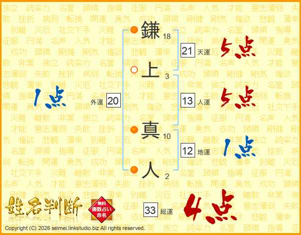 鎌上真人さんの総運は33画の4点!