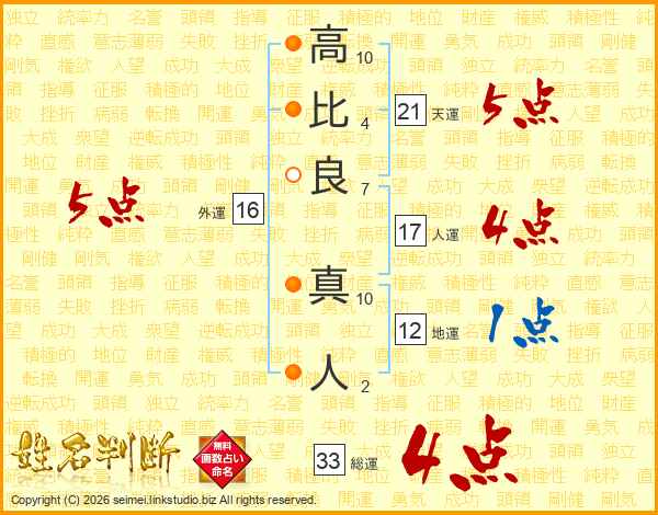 高(10画)比(4画)良(7画) 真(10画)人(2画)