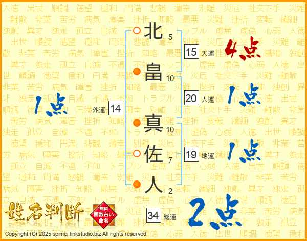 北(5画)畠(10画) 真(10画)佐(7画)人(2画)