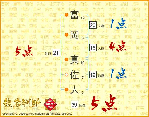 富岡真佐人さんの総運は39画の5点!