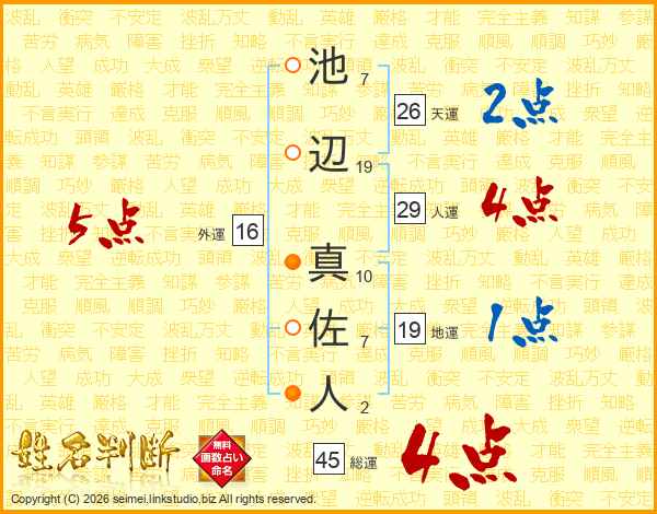 池辺真佐人さんの総運は45画の4点!