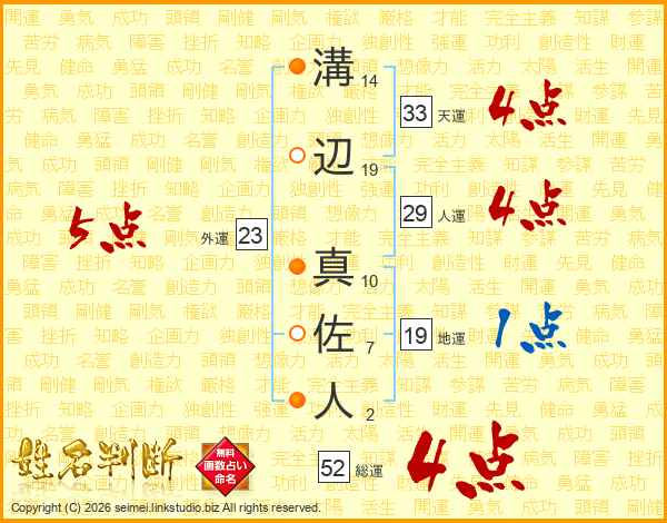 溝(14画)辺(19画) 真(10画)佐(7画)人(2画)
