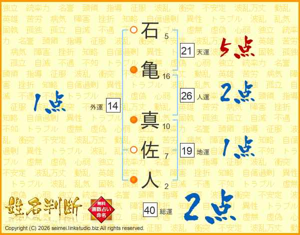 石亀真佐人さんの天運は21画の5点!