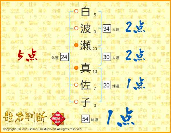 白波瀬真佐子さんの総運は54画の1点!