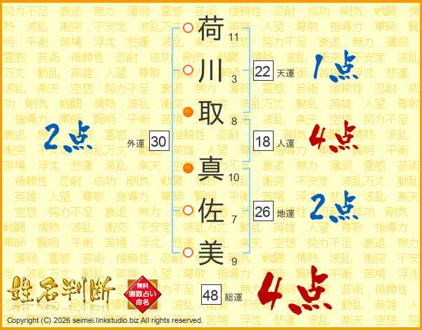 荷川取真佐美さんの総運は48画の4点!