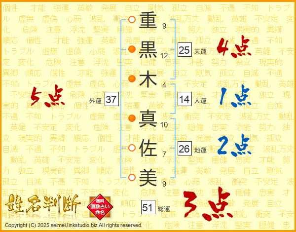 重黒木真佐美さんの総運は51画の3点!