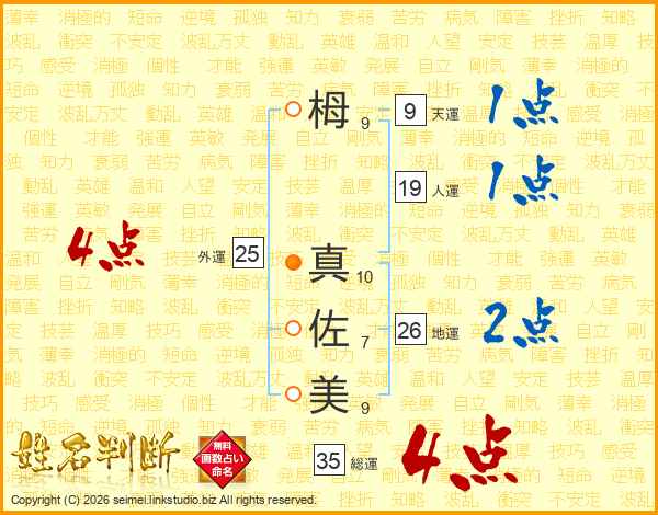 栂真佐美さんの地運は26画の2点!