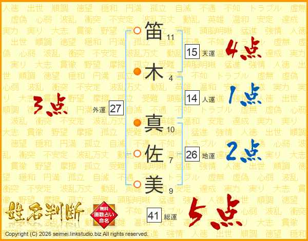 笛木真佐美さんの総運は41画の5点!