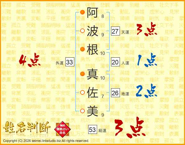 阿波根真佐美さんの外運は33画の4点!