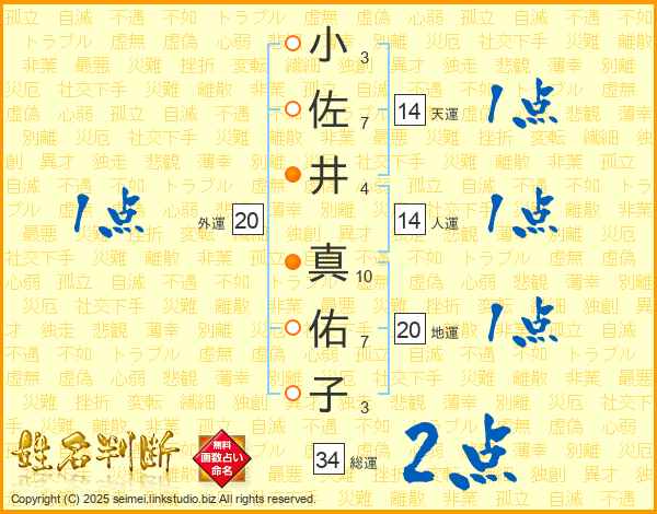 小佐井真佑子さんの総運は34画の2点!