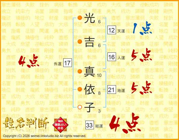 光吉真依子さんの総運は33画の4点!