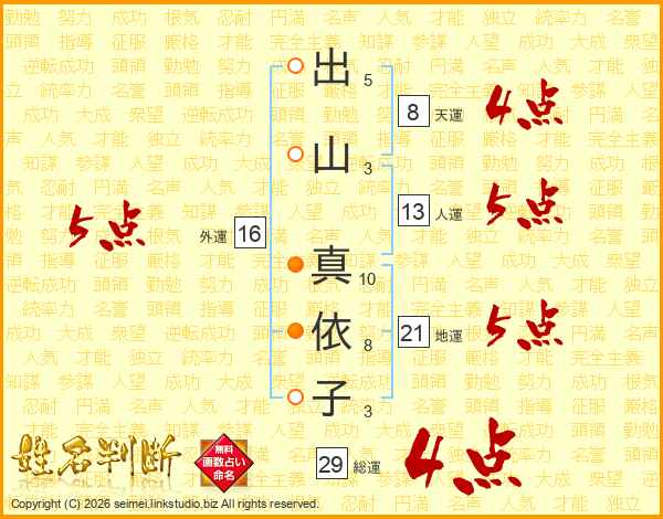 出山真依子さんの総運は29画の4点!