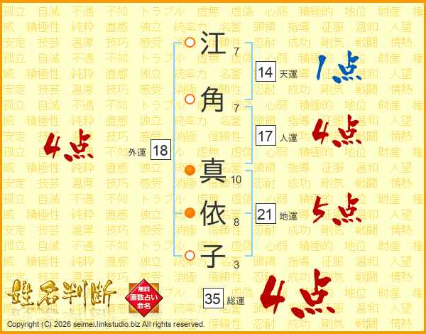江角真依子さんの総運は35画の4点!