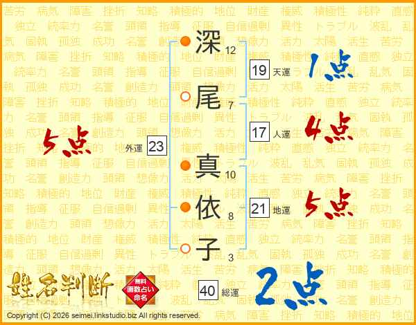 深(12画)尾(7画) 真(10画)依(8画)子(3画)