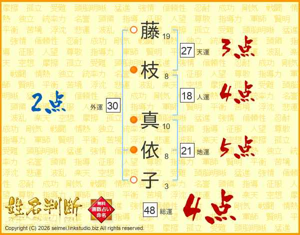 藤(19画)枝(8画) 真(10画)依(8画)子(3画)