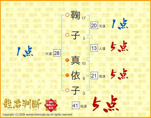 鞠(17画)子(3画) 真(10画)依(8画)子(3画)