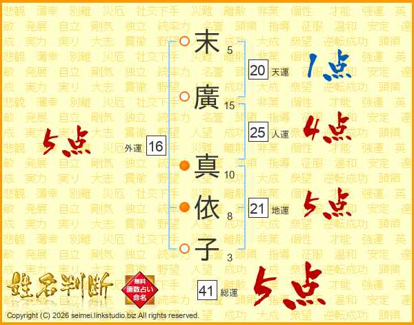 末廣真依子さんの外運は16画の5点!