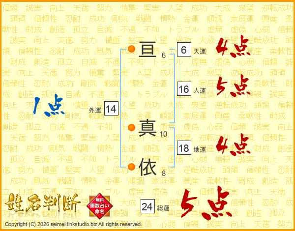 亘真依さんの外運は14画の1点!