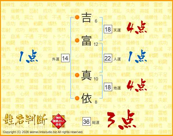 吉(6画)富(12画) 真(10画)依(8画)