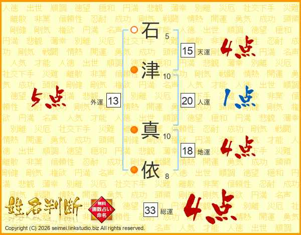 石津真依さんの総運は33画の4点!