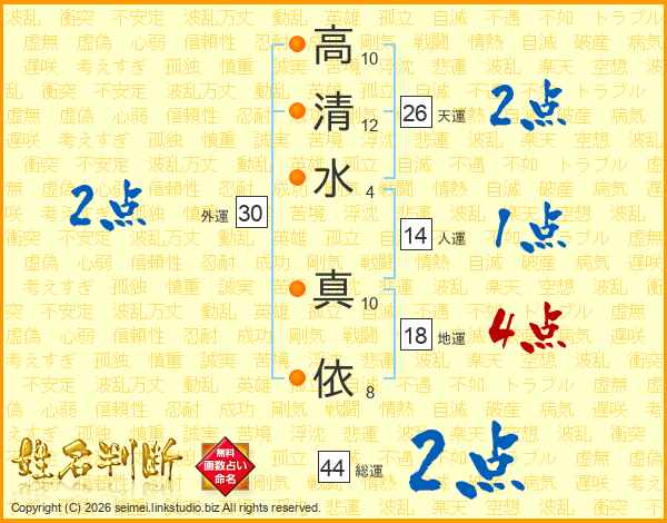 高(10画)清(12画)水(4画) 真(10画)依(8画)