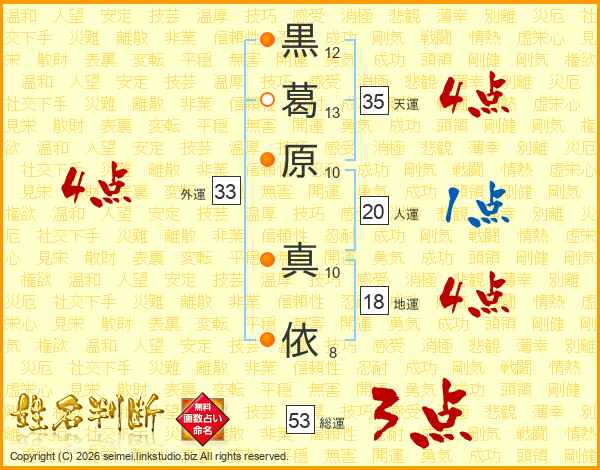 黒葛原真依さんの総運は53画の3点!